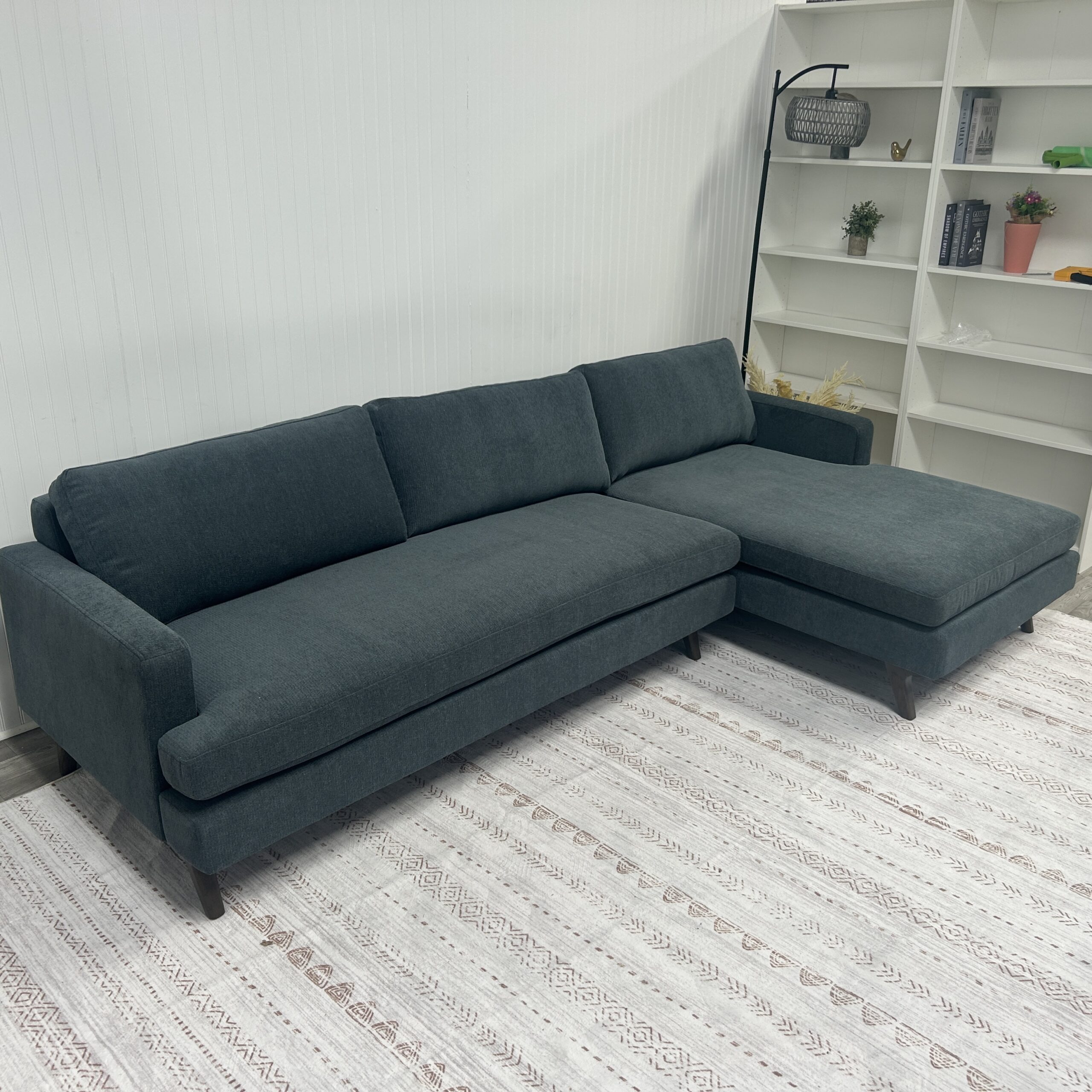 Width: 108″, Depth: 38″, Height: 30″, Chaise: 62″, Seat Height: 18″